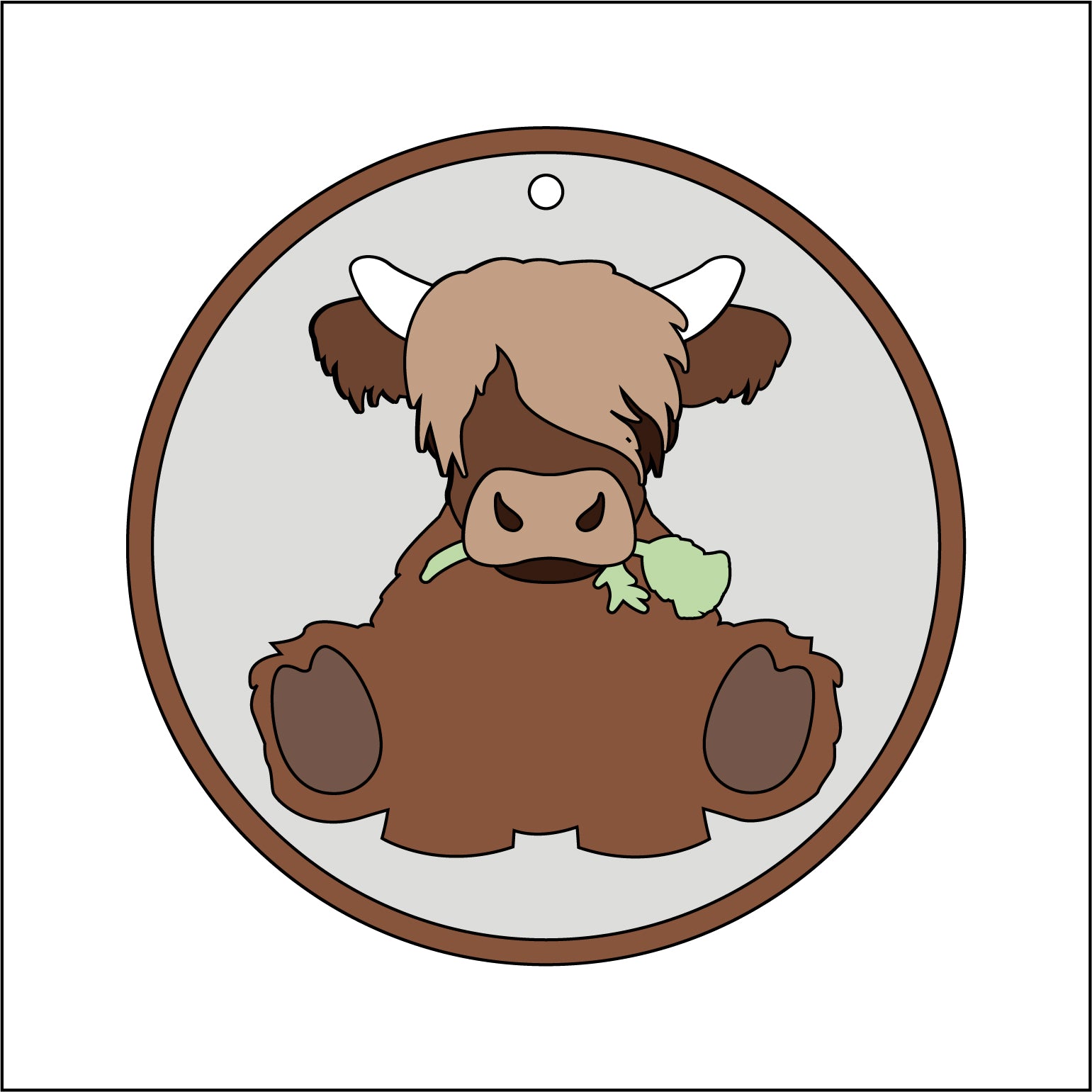 10cm Highland Cow Round With Thistle Bauble