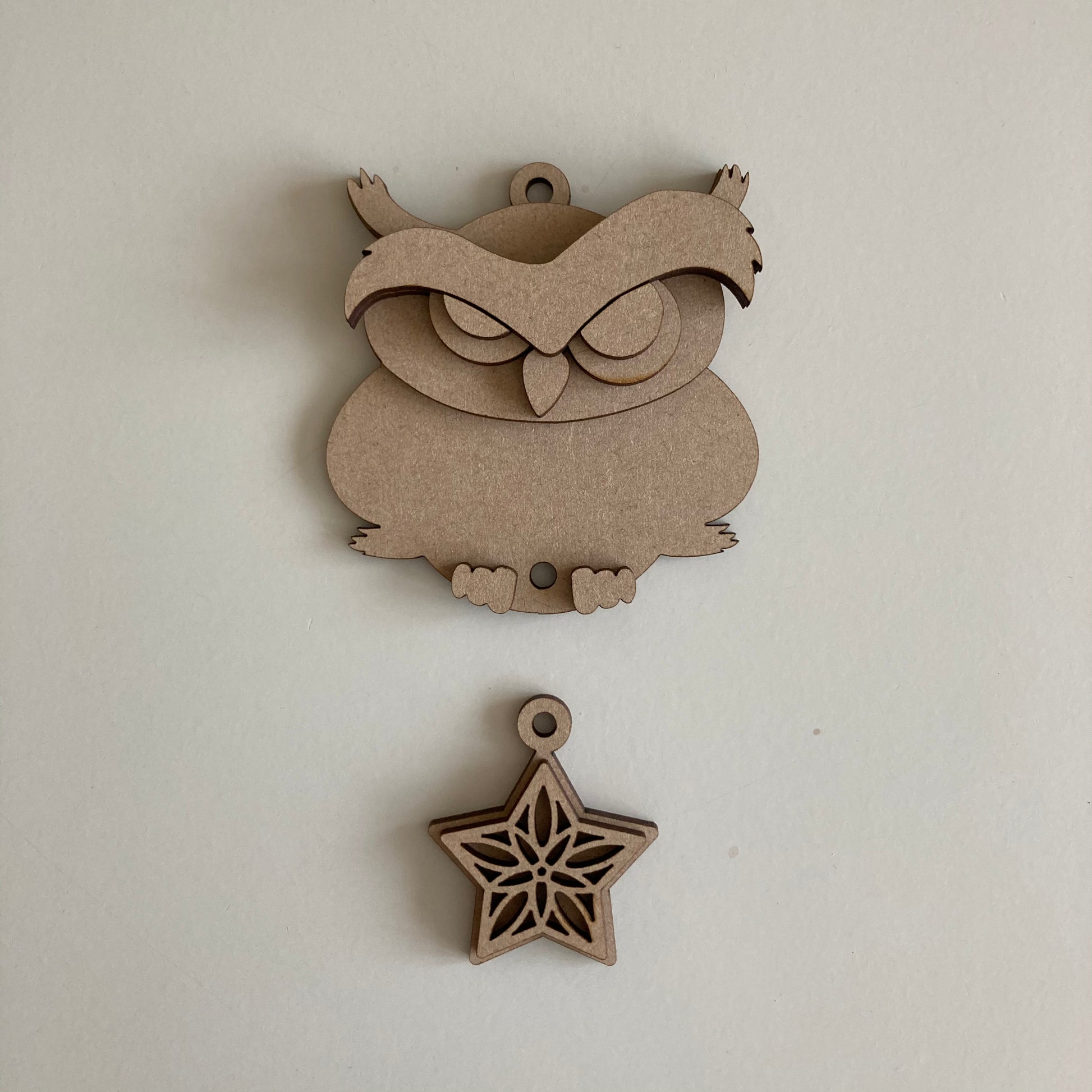 12.5cm Owl & Patterned Star Dangly Decoration