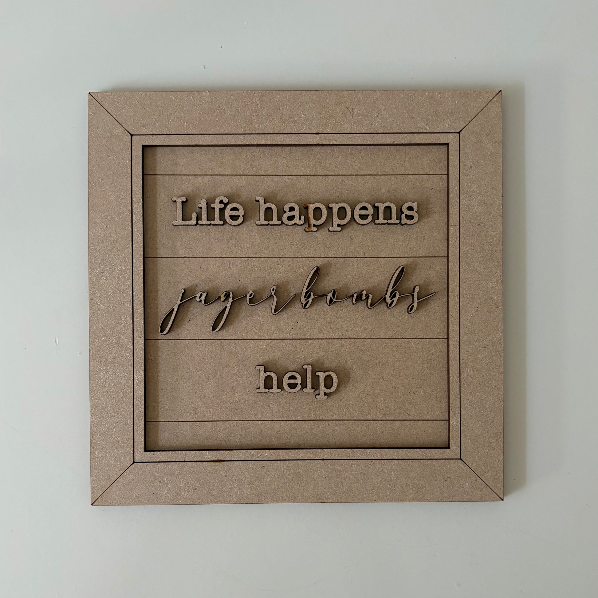 19cm Life Happens Jager Bombs Help sign kit.
