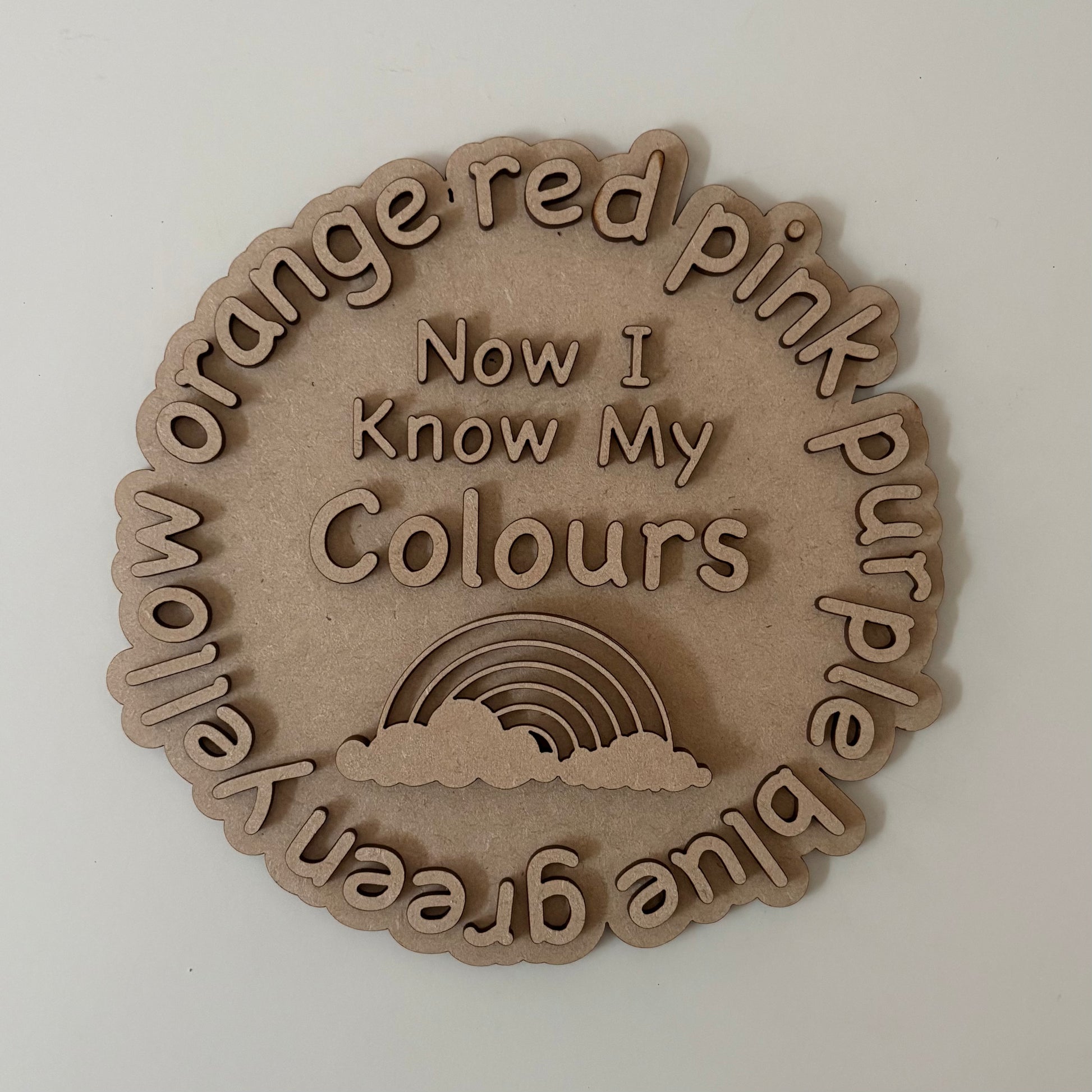 20cm Now I Know My Colours Sign