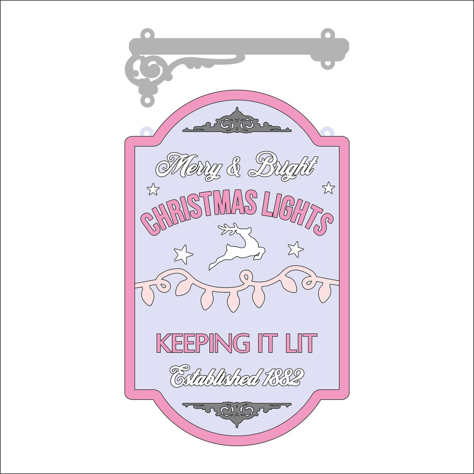 25cm Merry & Bright Christmas Lights Hanging Sign